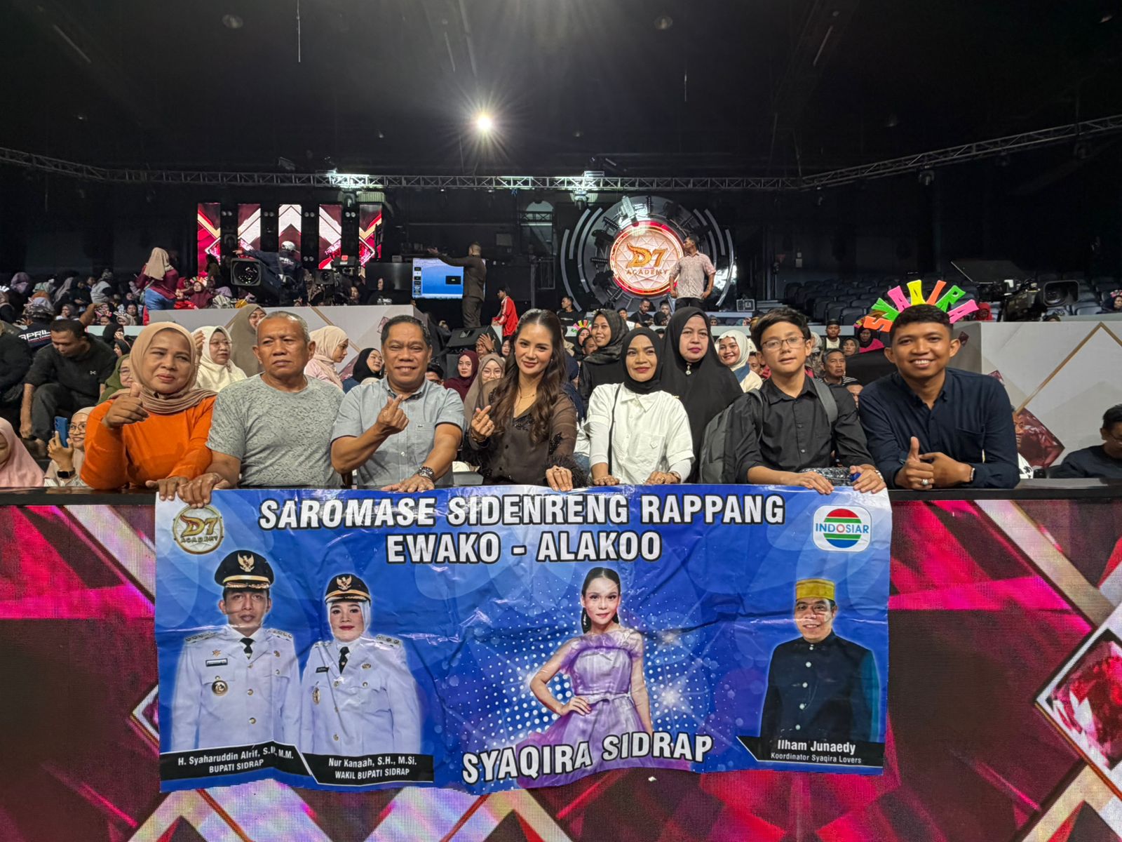 Nama “SYAQIRAH – SIDRAP” muncul di layar raksasa.
