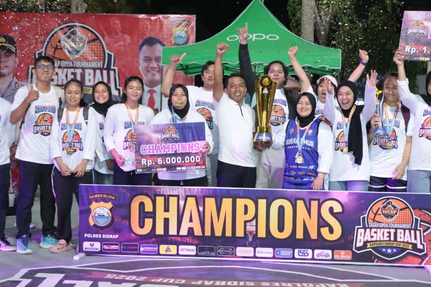 Sidrap, Sulawesiplus.com — Kapolres Sidrap Akbp Fantry Taherong secara resmi menutup turnament basketball bertajuk “Sigap Open Tournament Basketball Kapolres Sidrap Cup 2025” yang berlangsung di lapangan Usman Isa Kabupaten Sidrap, Minggu (19/10/25) dinihari